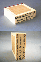 【 ご入力例 】 1枚目… 書体 『明朝体』 彫刻文字 「 株式会社はんこキング 」 2枚目… 書体 『楷書体』 彫刻文字 「 代表取締役 山田太郎」 3枚目… 書体 『角ゴシック』 彫刻文字 「 〒532-0011大阪市淀川区西中島6-2-3-225 」 4枚目… 書体 『丸ゴシック』 彫刻文字 「 TEL : 06-6889-0808 FAX : 06-6889-0809 」 追加分… 書体 『明朝体』 彫刻文字 「 URL : https://www.rakuten.co.jp/hanko-king/ 」 ●台木サイズに関して 基本的には、以下のサイズで作成をいたします。