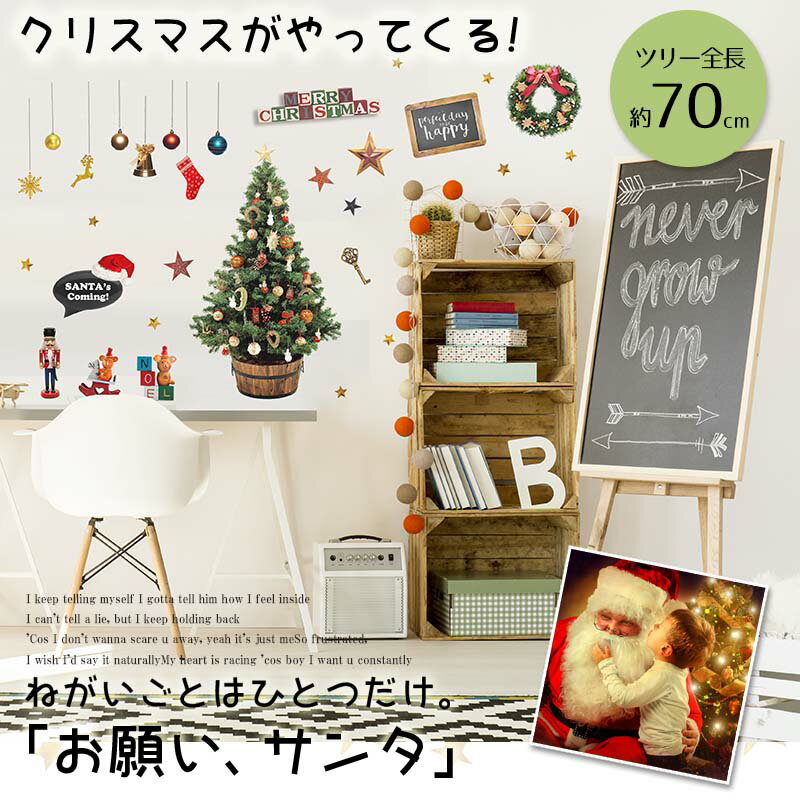 クリスマスツリー 送料無料 ウォールステッカー クリスマス 飾り 【お願いサンタ】 3枚組 シール 壁 壁紙 クリスマスツリー ツリー ツリーの飾り リース 貼ってはがせる 北欧 実写 サンタ サンタクロース パーティー 飾り付け 装飾 オーナメント