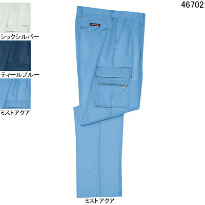 作業着 作業服 作業ズボン 自重堂 46702 防菌防臭ツータックカーゴパンツ W82・ミストアクア100