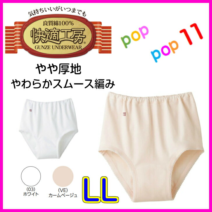 グンゼ 快適工房 婦人ショーツ スムース編み 2枚セット LL (レディース GUNZE 綿100% コットン100 女性 下着 肌着 パンツ インナー やわらか 日本製 大きいサイズ)【取寄せ】